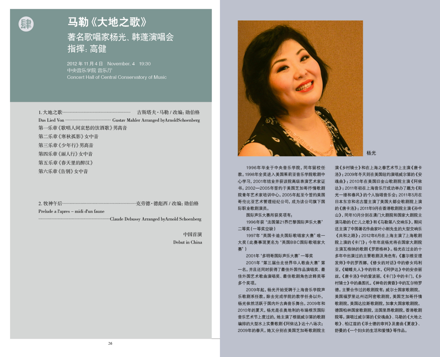 马勒《大地之歌》著名歌唱家杨光、韩蓬演唱会