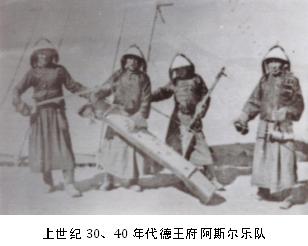 “阿斯尔”到底何时产生,由于缺乏有力的证据,有待进一步研究。不过,通过乐曲标题似乎看作为清初之作。据一些老人的回忆,阿斯尔过去是在王公贵族府里演奏,这使人联想起清朝宫廷“蒙古音乐”。[10]“蒙古音乐”只有工尺谱而活态形式已失传,而“阿斯尔”却以口传形式流传在民间。二者曾在同一个时代流行于同一个地区,而且形式均为以乐为主,兼有歌唱,并且都以王公贵族为主要恩主——这些似乎说明二者必有联系。由于缺乏进一步的研究,这里不感断言,但是这足以表明“阿斯尔”的宫廷渊源和它的古老历史。