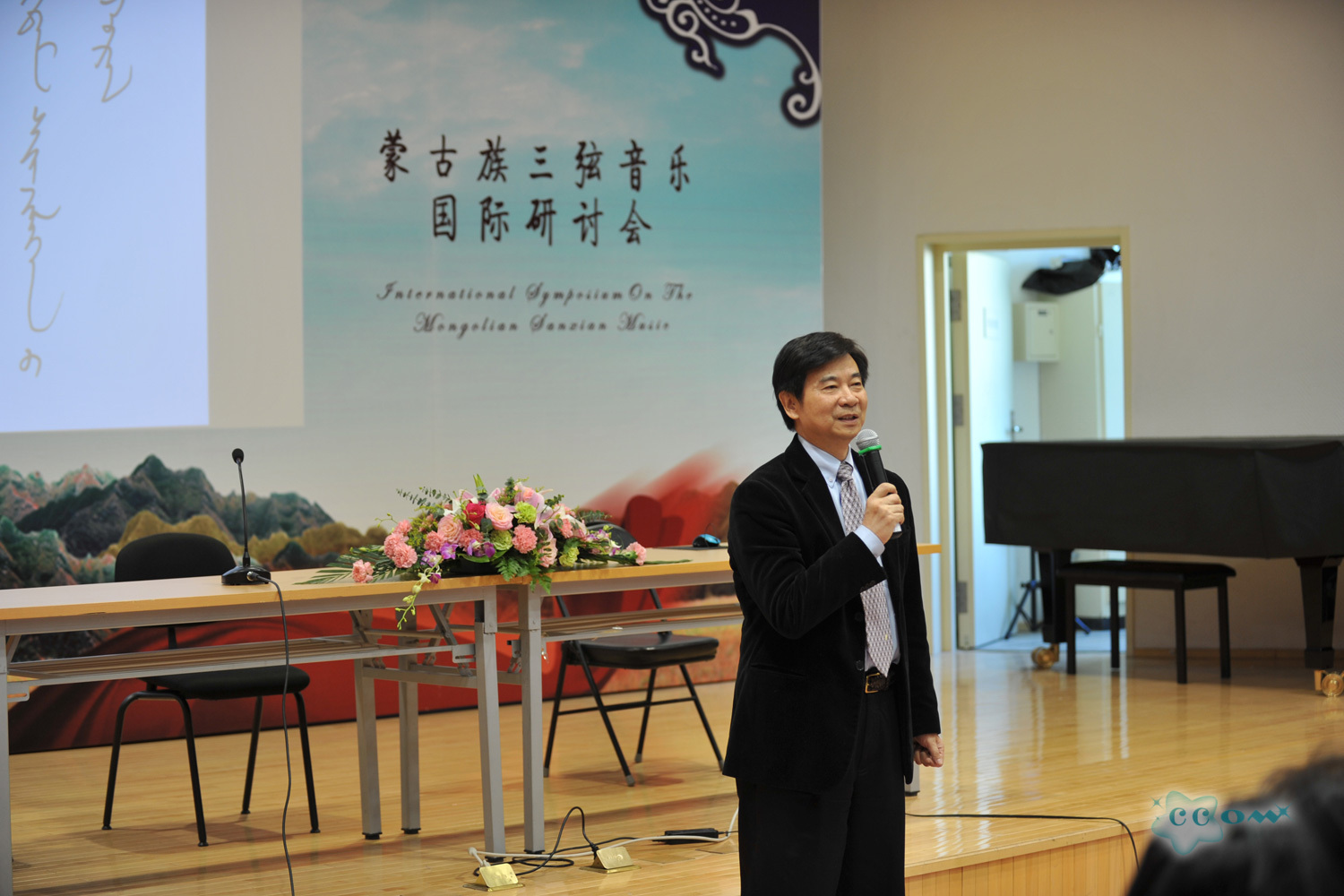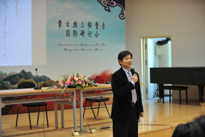 12日上午九时,学术研讨会的开幕式在学院综合楼501报告厅如期举行。我院院长王次炤、党委书记郭淑兰和中外蒙古族的专家学者,以及从全国各地赶来的三弦界的同仁朋友、音乐爱好者和我院部分师生参加了本次活动。学术研讨会的开幕式由民乐系系主任于红梅教授主持。王次炤院长致开幕词:“------寻觅三弦的音韵与灵魂;追求三弦的精神与理想。三弦是一件具有世界性的特色乐器,它的运用的范围从民间至宫廷极为广泛和重要的。国际三弦学术研讨会是一次三弦的盛会,一场跨国的交流,具有重大的历史意义。欢迎蒙古族的三弦专家学者和全国各地的三弦同仁们并预祝本次国际三弦学术研讨会和音乐会圆满成功!”