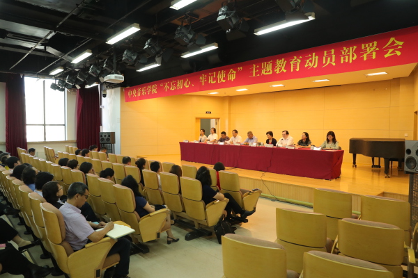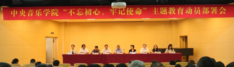 9月18日下午,中央音乐学院召开“不忘初心、牢记使命”主题教育动员部署会,深入学习贯彻习近平总书记关于“不忘初心、牢记使命”主题教育的重要讲话和中央总体要求,贯彻落实教育部党组第二批主题教育动员会议精神,全面部署学校主题教育工作。教育部直属高校“不忘初心、牢记使命”主题教育第二巡回指导组万志建副组长出席会议并讲话,我校主题教育领导小组组长、党委书记赵旻作动员讲话,俞峰校长主持大会。第二巡回指导组成员黄飞同志、秦莹同志、教育部党建联络员黄华英同志到会指导,学校全体校领导、中层干部、教授党员代表、教职工党员代表、学生党员代表等105人参加会议。