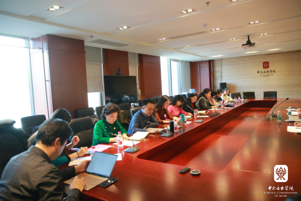 教育部直属高校主题教育第二巡回指导组成员吴洪彪、黄飞,中央音乐学院党委书记赵旻,党委副书记、校长俞峰,副校长肖学俊,党委副书记苗建华,副校长秦文琛、于红梅,党委副书记刘春梅出席会议。会议由俞峰主持。
