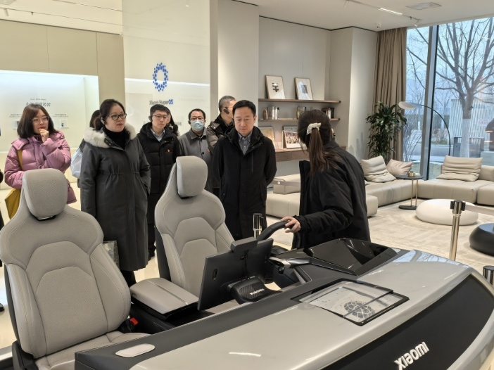 在小米集团产业发展部、公共事务部相关负责人的陪同下,我校一行先后参观了小米汽车品牌体验中心与技术研发展厅,近距离感受小米汽车“人车家全生态”的创新理念与技术实力。从澎湃OS实现的跨终端无缝互联,到HyperEngine自研电机的性能突破,从极简主义的工业设计美学,到智能座舱的人文关怀细节,小米汽车将科技普惠与人文温度深度融合的实践,让党员干部们直观领略了“中国智造”的硬实力与软实力。在互动体验区,大家亲身体验了语音交互、场景化音乐座舱等功能,对科技如何赋能生活场景、艺术如何融入智能产品有了更鲜活的认知。