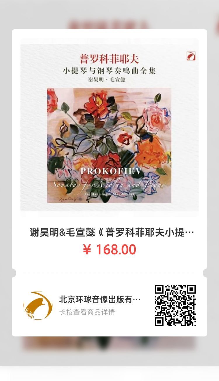 小提琴演奏家,中央音乐学院管弦系小提琴副教授、硕士生导师谢昊明携手青年钢琴家毛宣懿演奏录制的专辑《普罗科菲耶夫小提琴与钢琴奏鸣曲全集(Prokofiev: Sonatas for Violin and Piano)》,由中央音乐学院北京环球音像出版有限公司独家出版并全球数字发行。