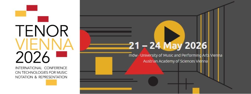 We invite researchers, composers, scientists, technologists and performers to submit their work to the international conference on technologies for music notation and representation TENOR 2026. This conference in Vienna has a focus on innovative advancements on audio scores: musical notation, representation technologies, methods of composition, interpretation, psychoacoustic questions and aesthetic analysis connected to the concept of mimesis. The conference is part of the research project Sound as Score funded in whole or in part by the Austrian Science Fund (FWF) and hosted by the University of Music and Performing Arts Vienna (mdw) and the Austrian Academy of Sciences (ÖAW), Vienna.