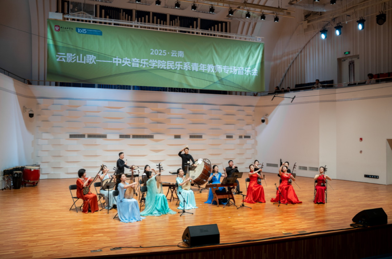 10月22日晚,云南大剧院音乐厅内灯火辉煌、座无虚席,第三届中国民族音乐传承周的“云影山歌”中央音乐学院青年教师专场音乐会在此圆满举行。一场汇聚中央音乐学院优秀青年民乐师资力量的音乐会,以学术性、艺术性与时代性的高度融合,向春城百姓交出一份民族音乐的多彩答卷。现场观众热情似火,沉浸在经典与现代交融的民乐盛宴中。舞台之上,中央音乐学院的优秀青年教师们,凭借精湛的技艺和深厚的艺术修养,以一场高水准演出为春城绘就了一幅兼具学术高度与文化温度的民族音乐长卷,生动诠释了中央音乐学院民族音乐青年演奏家的优秀风范与时代担当。